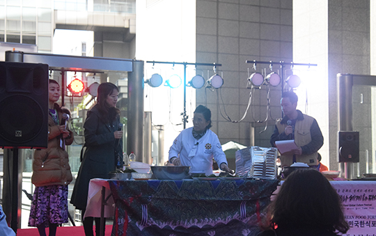 健康食の行事として韓国のキムチ体験や薬膳料理体験も舞台前で行いました。