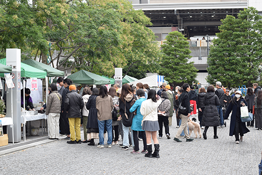 イベントへの来場者も、通りがかりの歩行者も、その珍しさから立ち止まり、品物を眺めたり、購入したりとにぎわっていました。